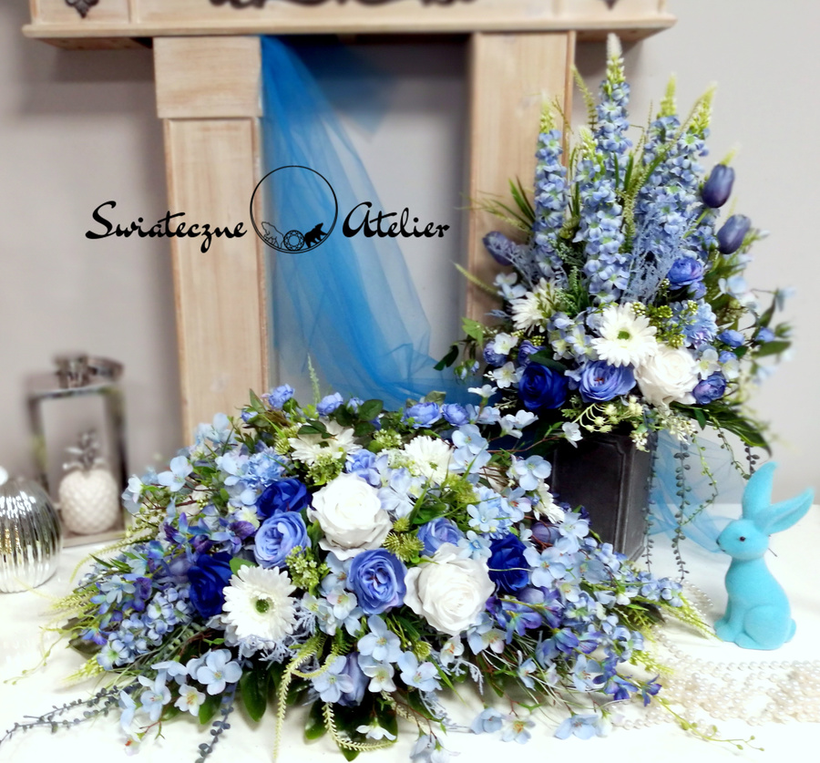 Każdą z naszych dekoracji wykonujemy ręcznie, więc gwarantujemy, że dekoracja, którą Wam dostarczymy, będzie jedyna w swoim rodzaju. Ze względu na to, że nasze kompozycje wykonujemy są za każdym razem ręcznie oraz sezonowość wykorzystywanych w kompozycjach dodatków – kompozycja przygotowana dla Państwa może delikatnie różnić się od przedstawionej na zdjęciu. Gwarantujemy natomiast jakość i estetykę wykonania Państwa zamówienia.