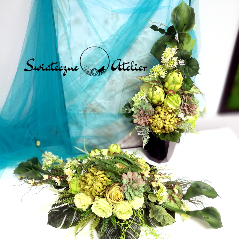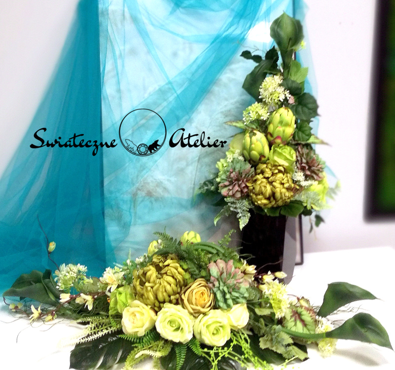Co więcej, do tej kompozycji możemy przygotować również inne elementy dekoracyjne, takie jak wieńce, stroiki, bukiety itp., zgodnie z Waszymi życzeniami, które możecie nam przekazać.