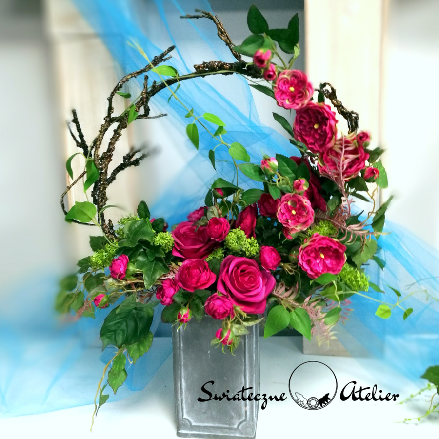 Wszystkie kwiaty wykorzystane w kompozycji to dobrej jakości sztuczne kwiaty i doskonale imitują te prawdziwe.