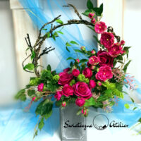 Bukiet nagrobny Cudowne chwile nr 1167 jest to wiosenna kompozycja kwiatowa. Dekorację osadziliśmy w plastikowym wkładzie. Piękne, romantyczne róże zostały uzupełnione zielonymi dodatkami. Kwiaty utrzymaliśmy w eleganckiej kolorystyce, więc tworzą wyjątkową kompozycję. Rośliny, których użyliśmy do tej dekoracji nagrobnej są w pięknych kolorach i dekoracja niezależnie od pory roku będzie prezentować się pięknie. Piękne, amarantowe róże stanowią trzon kompozycji. Ciekawa forma nadaje bukietowi charakteru i elegancji. Wysokiej jakości kwiaty oraz harmonia kompozycji pięknie zaprezentują się zarówno na ciemnym jak i jasnym nagrobku. Zielone elementy podkreślają kolor kwiatów dekoracji.