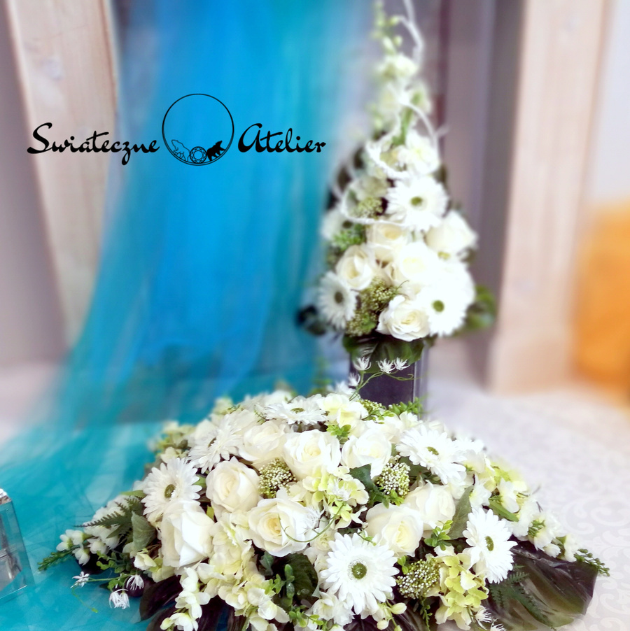 Jeżeli spodobała się Wam nasz Bukiet nagrobny i stroik w bieli nr 843 możemy dla Was przygotować w komplecie inne elementy dekoracyjne, takie jak wianki, girlandy itp., zgodnie z Waszymi życzeniami, które możecie nam przekazać.