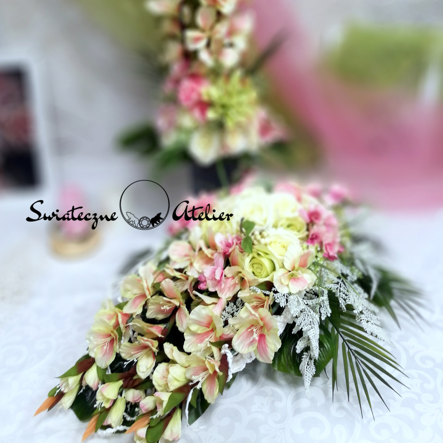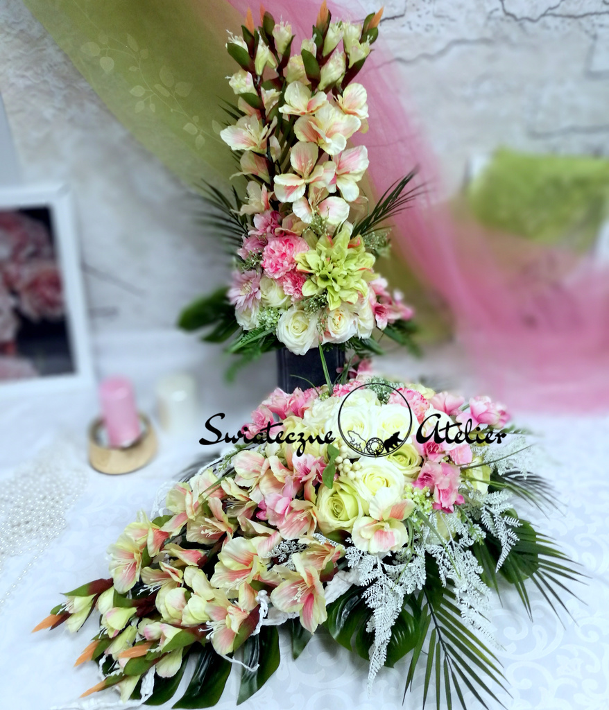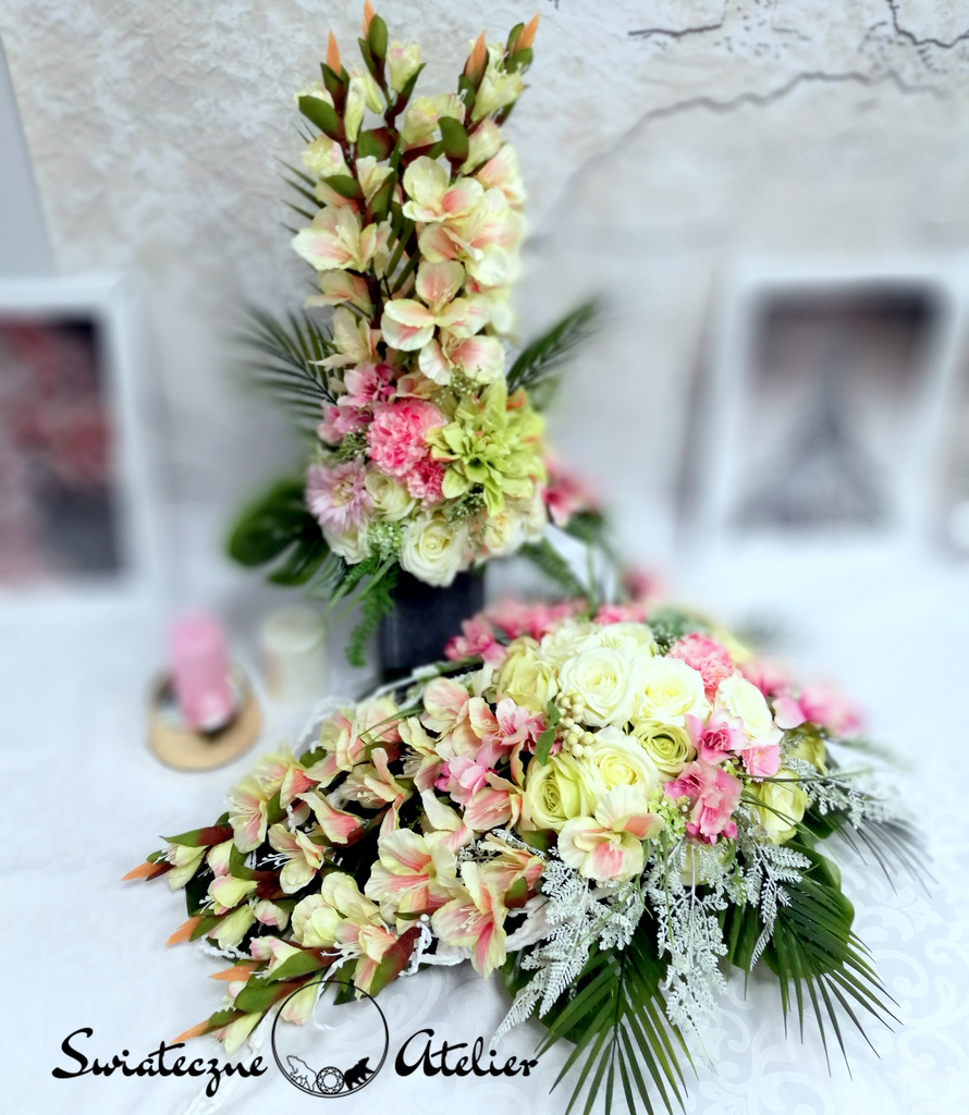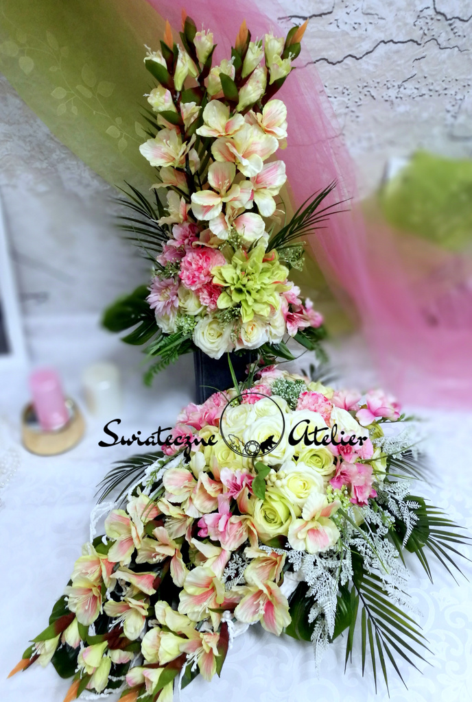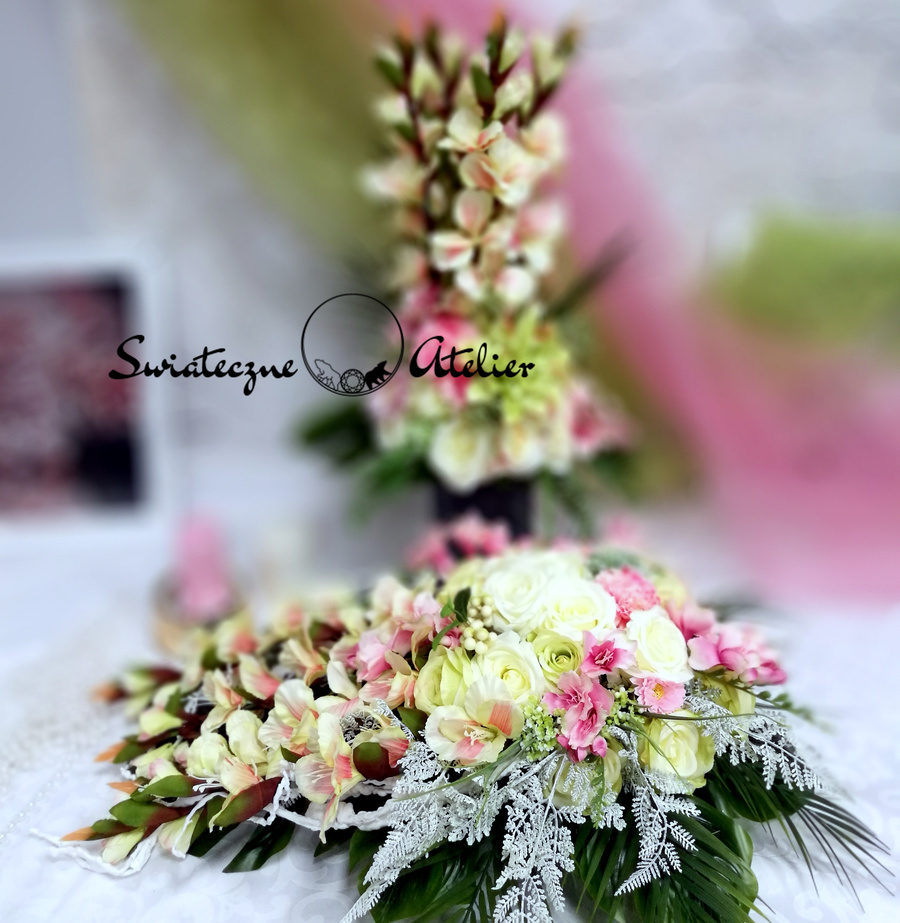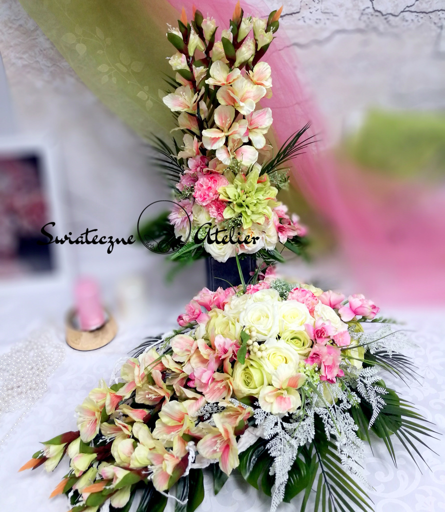 Jeżeli spodobała się Wam nasza kompozycja, możemy dla Was przygotować w komplecie inne elementy dekoracyjne, takie jak wianki, girlandy itp., zgodnie z Waszymi życzeniami, które możecie nam przekazać.