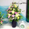 Wszystkie kwiaty wykorzystane w kompozycji to wysokiej jakości sztuczne kwiaty. Jest to elegancka alternatywa dla tradycyjnych wiązanek, sprzedawanych pod cmentarzami.