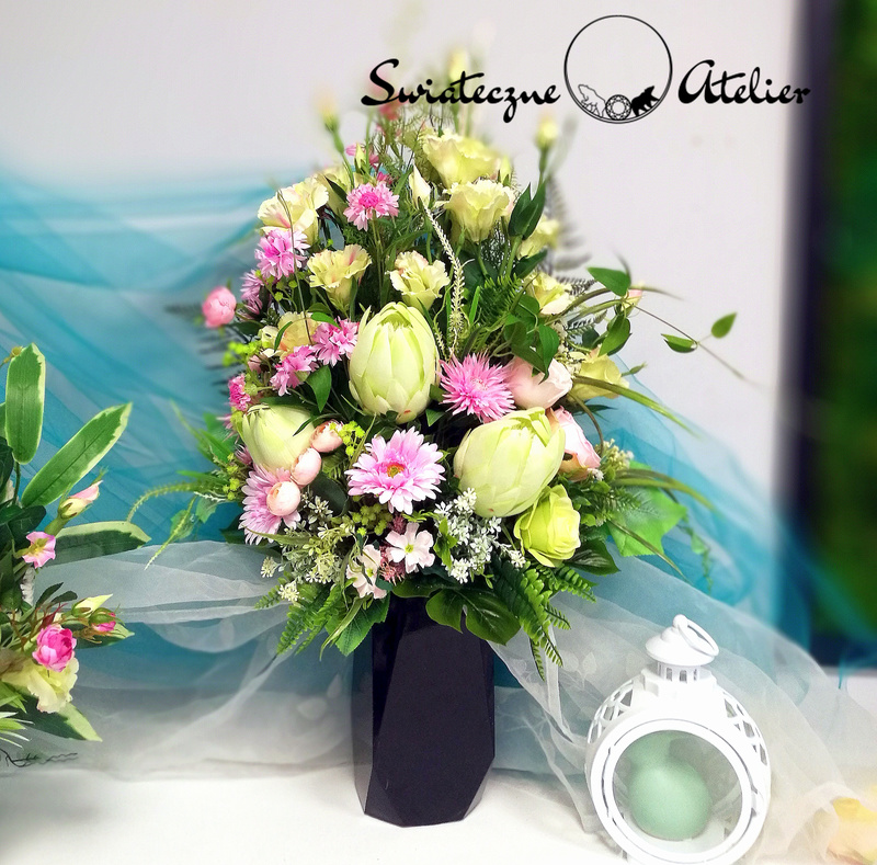 Każda z naszych dekoracji jest wykonywana ręcznie, więc gwarantujemy, że dekoracja dostarczona Wam będzie jedyna w swoim rodzaju. Ze względu na to, że nasze kompozycje wykonywane są za każdym razem ręcznie przez florystę oraz sezonowość wykorzystywanych w kompozycjach dodatków – kompozycja przygotowana dla Państwa może delikatnie różnić się od przedstawionej na zdjęciu. Gwarantujemy natomiast jakość i estetykę wykonania Państwa zamówienia.