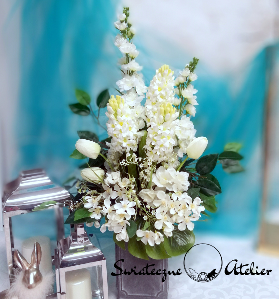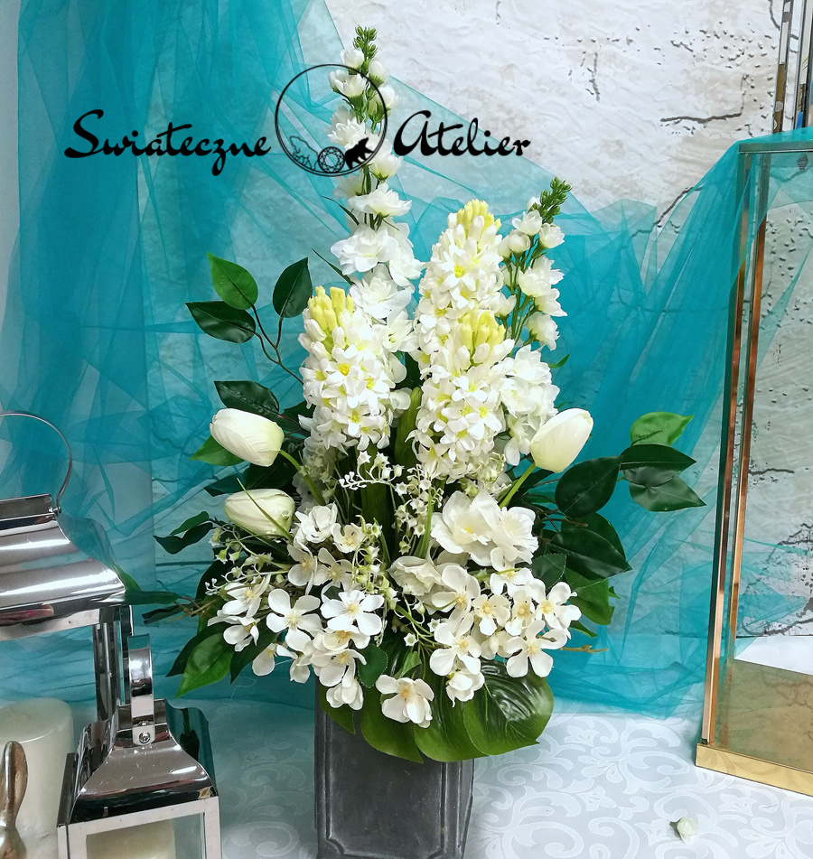 Jeżeli spodobał się Wam nasz Bukiet nagrobny Wiosna w bieli nr 708 możemy dla Was przygotować w komplecie inne elementy dekoracyjne. Na przykład wianki, stroiki, itp., zgodnie z Waszymi życzeniami. Jeśli znacie lub macie firmy, które potrzebują dla zbudowania eleganckiego wizerunku pięknych dekoracji – typu hotele, restauracje, salony kosmetyczne, gabinety lekarskie, domy weselne, itp., odzywajcie się do nas. Wykonujemy dowolne dekoracje kwiatowe zgodnie ze wskazówkami zleceniodawców, łącząc Wasze pomysły z naszym talentem.