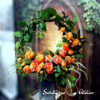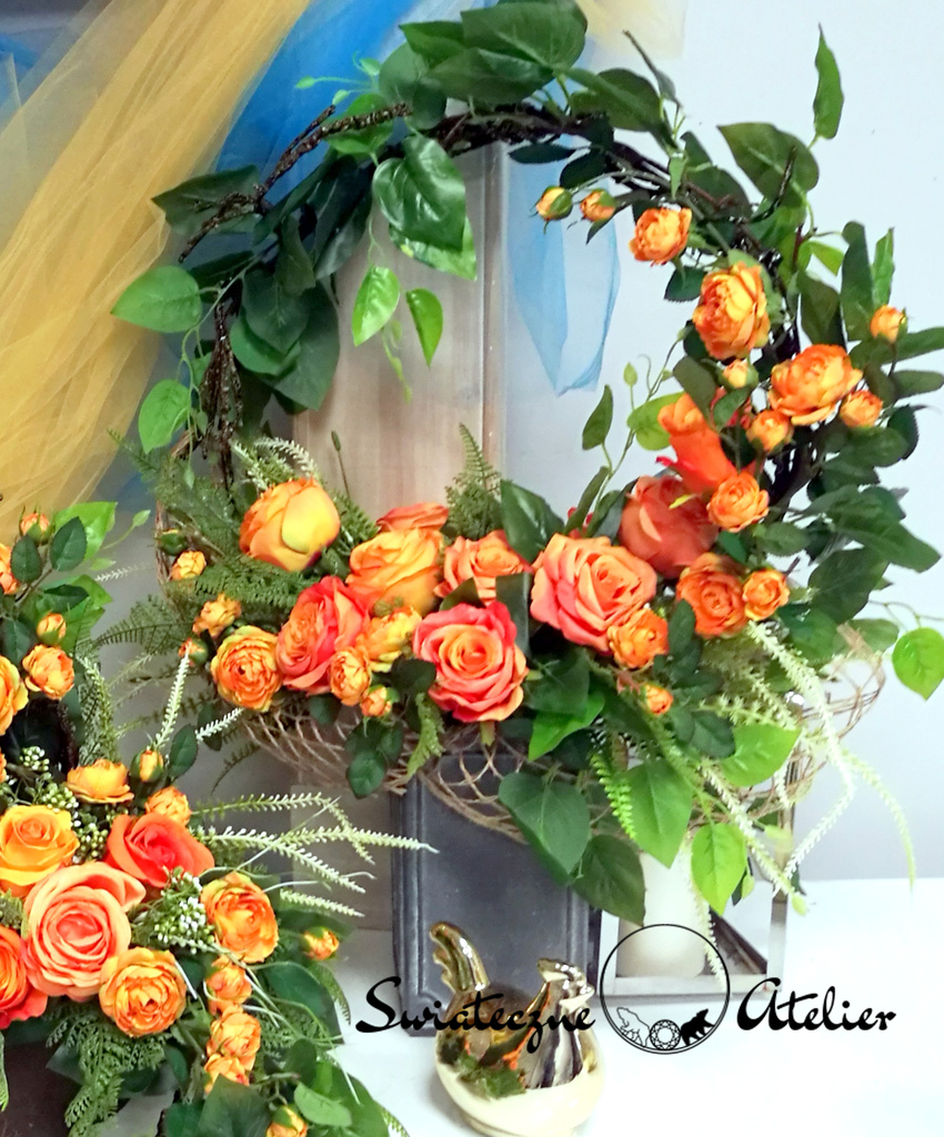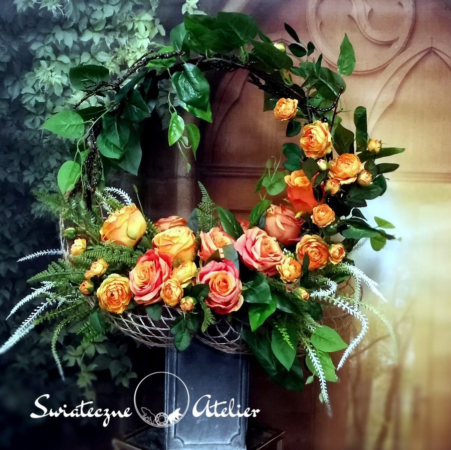 Bukiet nagrobny Zapach pomarańczy nr 1204 jest to wiosenna kompozycja kwiatowa. Dekorację osadziliśmy w plastikowym wkładzie. Piękne, romantyczne róże zostały uzupełnione zielonymi dodatkami. Kwiaty utrzymaliśmy w energetycznej kolorystyce, więc tworzą wyjątkową kompozycję. Rośliny, których użyliśmy do tej dekoracji nagrobnej są w pięknych kolorach i dekoracja niezależnie od pory roku będzie prezentować się pięknie. Piękne, pomarańczowe róże stanowią trzon kompozycji. Ciekawa forma nadaje bukietowi charakteru i elegancji. Wysokiej jakości kwiaty oraz harmonia kompozycji pięknie zaprezentują się zarówno na ciemnym jak i jasnym nagrobku. Zielone elementy podkreślają kolor kwiatów dekoracji.