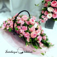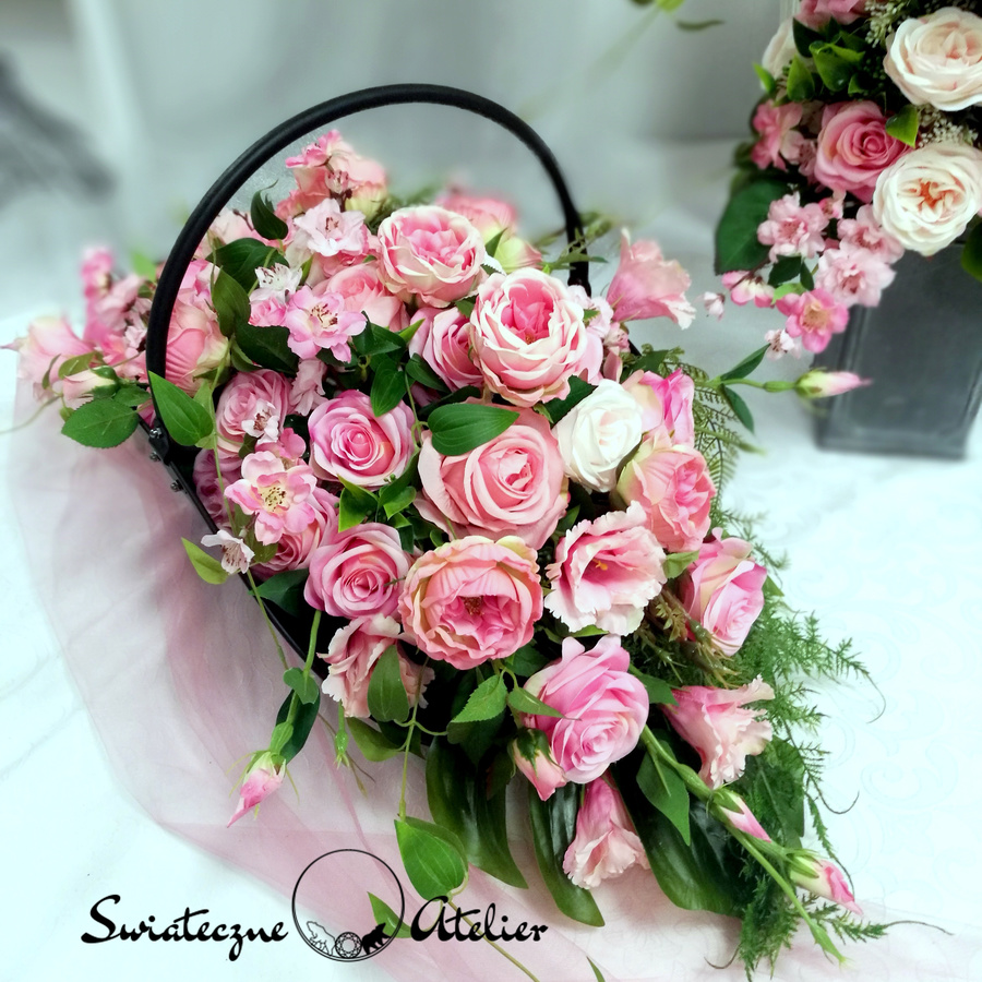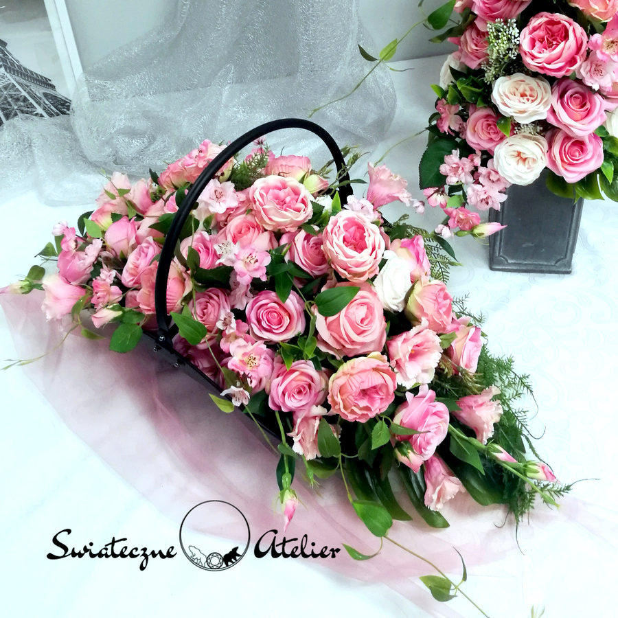 Cudowne róże stroik nagrobny w koszu nr 951 to piękna, całoroczna dekoracja. Stroik umieszczony w metalowym koszu prezentuje się bardzo elegancko. Wysokiej jakości sztuczne kwiaty otaczają zielone dodatki tworząc przepiękną dekorację. Kwiatostany kompozycji kwiatowej są starannie wykonane, do złudzenia przypominają naturalne. Kwiaty są wyjątkowej urody i dekoracja cały rok będzie prezentować się pięknie. Dzięki uniwersalnej kolorystyce sprawdzi się na każdym nagrobku, więc warto rozważyć jego wykorzystanie. Przepiękne róże i pełniki w cudownej kolorystyce świetnie sprawdzą się w nadchodzącym okresie. Ogromna ilość róż w słodkim, wyrazistym różu, delikatne paprocie pięknie ze sobą współgrają.