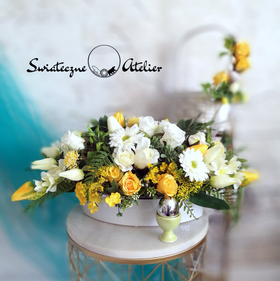 Jeżeli spodobał się Wam nasz Dekoracja kwiatowa Pogodny Poranek nr 673 możemy dla Was przygotować w komplecie inne elementy dekoracyjne, takie jak wianki, stroiki, itp., zgodnie z Waszymi życzeniami. Jeśli znacie lub macie firmy, które potrzebują dla zbudowania eleganckiego wizerunku pięknych dekoracji – typu hotele, restauracje, salony kosmetyczne, gabinety lekarskie, domy weselne, itp., odzywajcie się do nas. Wykonujemy dowolne dekoracje kwiatowe zgodnie ze wskazówkami zleceniodawców, łącząc Wasze pomysły z naszym talentem.