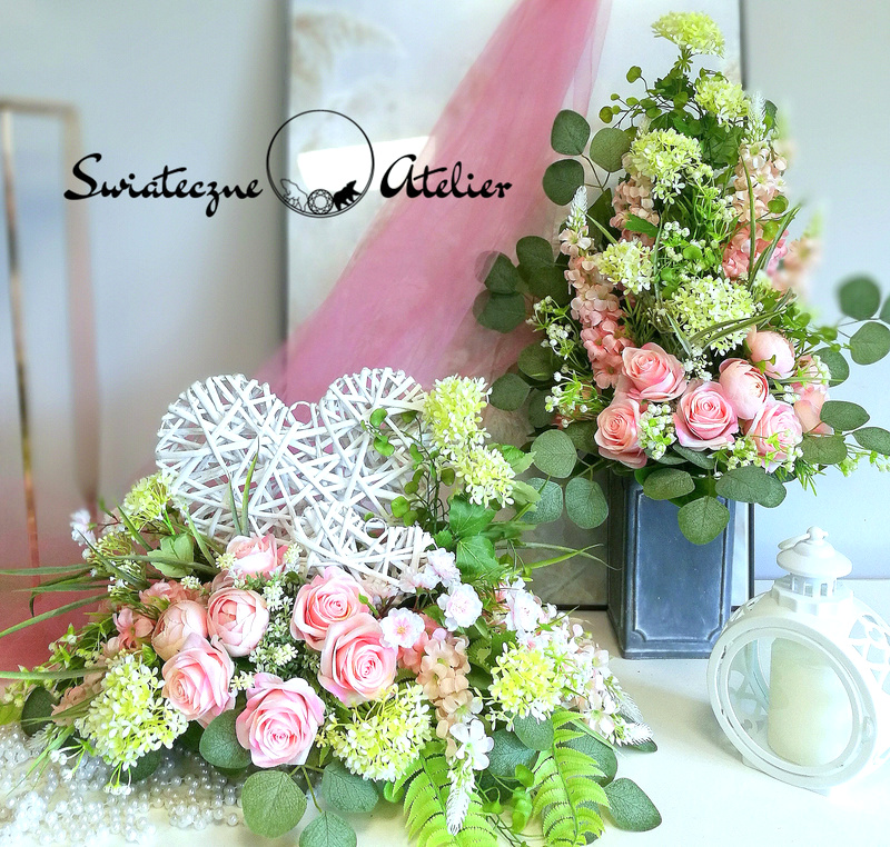 Dekoracja nagrobna z bukietem Delikatność nr 1432 jest to piękna kompozycja kwiatowa. Stroik osadzony jest w obciążonym naczyniu, a bukiet w plastikowym wkładzie. Kwiaty wysokiej jakości pięknie się prezentują. Wiklinowe serduszka otaczają kwiaty w subtelnej kolorystyce. Całość uzupełniona jest zielonymi dodatkami i wiosennymi akcentami. Kwiaty utrzymaliśmy w ciekawej kolorystyce tworzą wyjątkową kompozycję. Rośliny, których użyliśmy do tej dekoracji nagrobnej są w pięknych kolorach i dekoracja niezależnie od pory roku będzie prezentować się pięknie. Klimatyczne dodatki stanowią uzupełnienie kompozycji. Ciekawa forma nadaje stroikowi charakteru i elegancji. Wysokiej jakości kwiaty oraz harmonia kompozycji pięknie zaprezentują się zarówno na ciemnym jak i jasnym nagrobku.