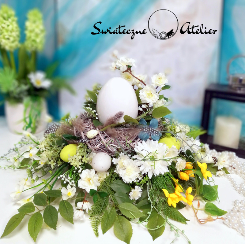 Jeżeli spodobała się Wam nasz Dekoracja wielkanocna z pisanką nr 1391 możemy dla Was przygotować w komplecie inne elementy dekoracyjne, takie jak wianki, stroiki, bukiety itp., zgodnie z Waszymi życzeniami, które możecie nam przekazać.