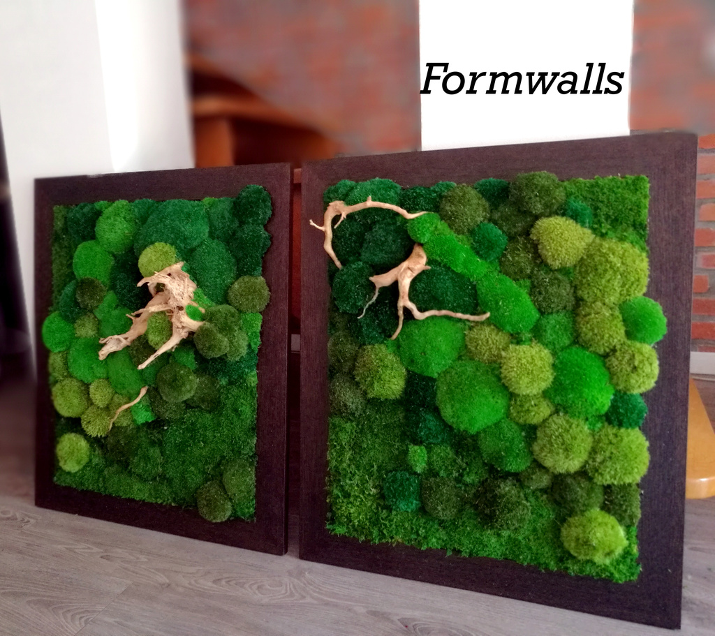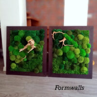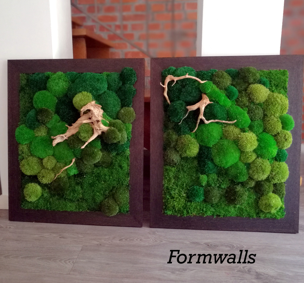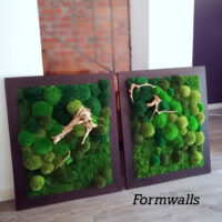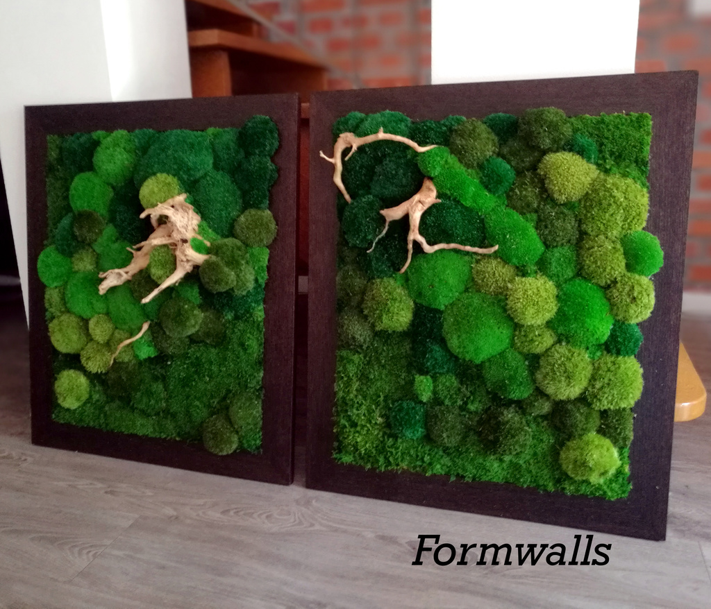 Dwa obrazy z mchów stabilizowanych do pięknego wyglądu i trwałości potrzebuje jedyne wilgotności powietrza na poziomie 40%-60% (co jest normalną wilgotnością powietrza w pomieszczeniach, w których przebywają ludzie, wynika to z pary wodnej wydzielającej się podczas oddychania).