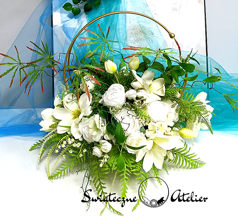 Jeżeli spodobała się Wam nasz Stroik możemy dla Was przygotować w komplecie inne elementy dekoracyjne, takie jak wianki, stroiki, itp., zgodnie z Waszymi życzeniami. Jeśli znacie lub macie firmy, które potrzebują dla zbudowania eleganckiego wizerunku pięknych dekoracji – typu hotele, restauracje, salony kosmetyczne, gabinety lekarskie, domy weselne, itp., odzywajcie się do nas. Wykonujemy dowolne dekoracje kwiatowe zgodnie ze wskazówkami zleceniodawców, doradzając i proponując także własne rozwiązania.