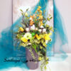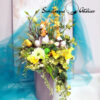 Kompozycja wielkanocna nr 1379 to piękna dekoracja, którą unieśliśmy w plastikowej, wysokiej donicy. Wysokiej jakości sztuczne kwiaty malowniczo prezentują się w tej osłonce. Piękny zajączek dodaje dekoracji charakteru. Kwiatostany są miękkie i delikatne w dotyku, więc do złudzenia przypominają naturalne. Kompozycja znakomicie nadaje się na prezent. Kompozycja jest urocza, utrzymana w wiosennej kolorystyce doskonale podkreśli wnętrze. Znakomicie wprowadzi ciepły nastrój.