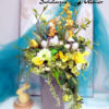 Kompozycja wielkanocna nr 1379 to piękna dekoracja dla miłośników nietuzinkowych dodatków do wnętrza. Pięknie ozdobi salon, kominek czy też jadalnię. Stroik jest trwały, ponieważ stworzony jest ze sztucznych elementów. Może stanowić wyszukany prezent dla tych, którzy gustują w niecodziennych dekoracjach domu.