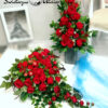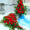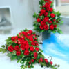 Serce nagrobne z bukietem w czerwieni nr 969 to piękna, całoroczna dekoracja. Stroik w kształcie serca prezentuje się bardzo elegancko. Bukiet został osadzony w plastikowym wkładzie. Wysokiej jakości sztuczne kwiaty otaczają zielone dodatki tworząc przepiękną dekorację. Kwiatostany kompozycji kwiatowej są starannie wykonane, do złudzenia przypominają naturalne. Kwiaty są wyjątkowej urody i dekoracja cały rok będzie prezentować się pięknie. Dzięki uniwersalnej kolorystyce sprawdzi się na każdym nagrobku, więc warto rozważyć jego wykorzystanie. Przepiękne róże i pełniki w cudownej kolorystyce świetnie sprawdzą się w nadchodzącym okresie.