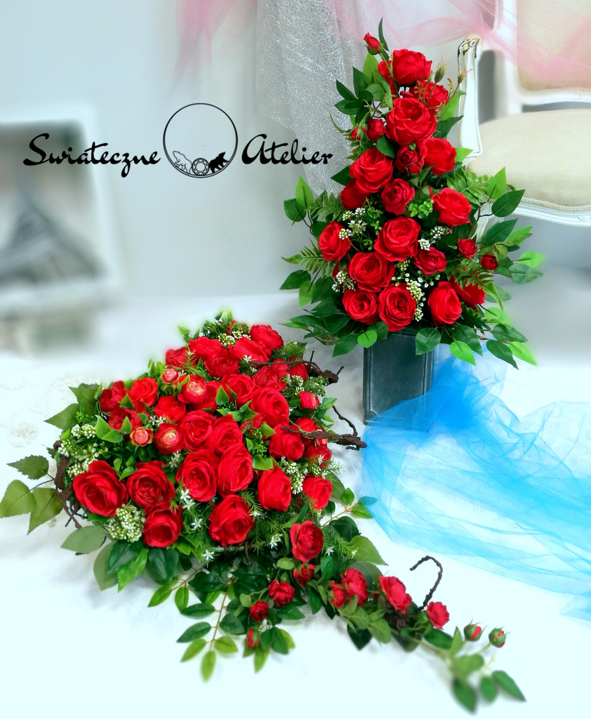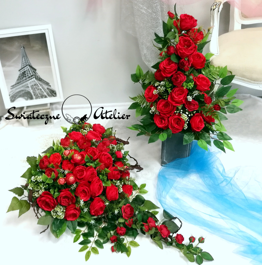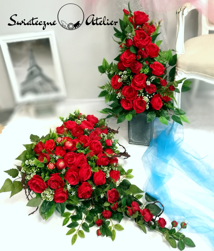 Jeżeli spodobała się Wam nasza Serce nagrobne z bukietem w czerwieni nr 969 możemy dla Was przygotować w komplecie inne elementy dekoracyjne, takie jak wianki, stroiki, itp., zgodnie z Waszymi życzeniami.
