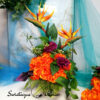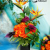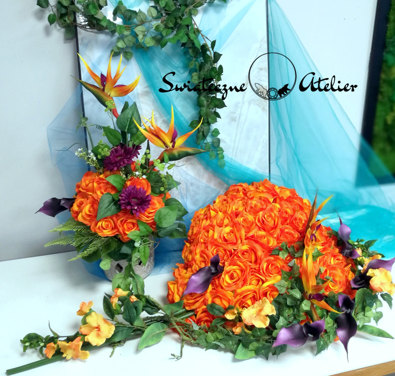 Serce nagrobne z dwoma bukietami nr 1499 jest to elegancka kompozycja kwiatowa. Dekorację osadziliśmy w drewnianej podstawie a bukiety w plastikowym, uniwersalnym wkładzie. Piękne kwiaty w wyjątkowej kolorystyce, wyraziste strelicje i i zielone dodatki tworzą uroczą kompozycję. Kwiaty zastosowane do tej dekoracji nagrobnej są w klimatycznych kolorach i dekoracja długo będzie prezentować się pięknie.  Prosta forma nadaje kompozycji lekkości i elegancji.  Wysokiej jakości kwiaty oraz harmonia kompozycji pięknie będzie prezentować się zarówno na ciemnym jak i jasnym nagrobku. Dekoracja ta jest niespotykana a zielone elementy podkreślają kolor zastosowanych kwiatów.
