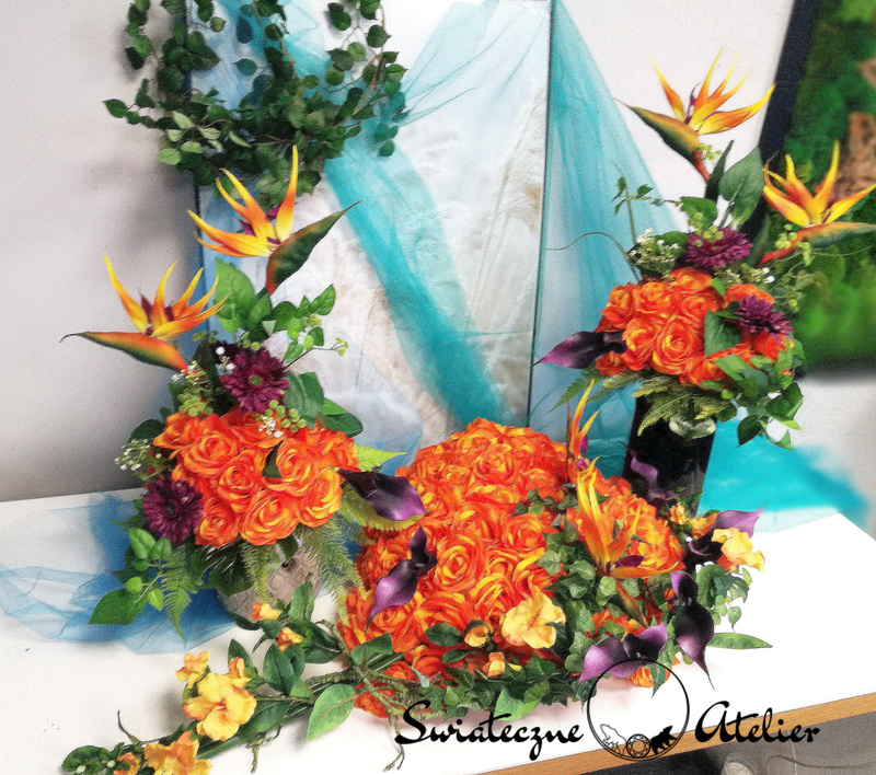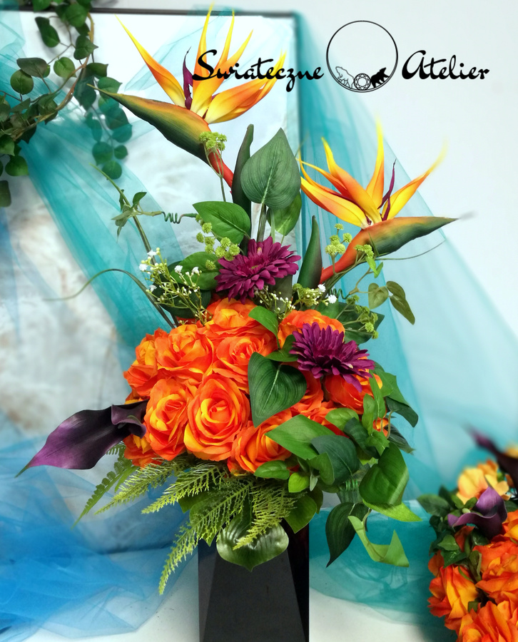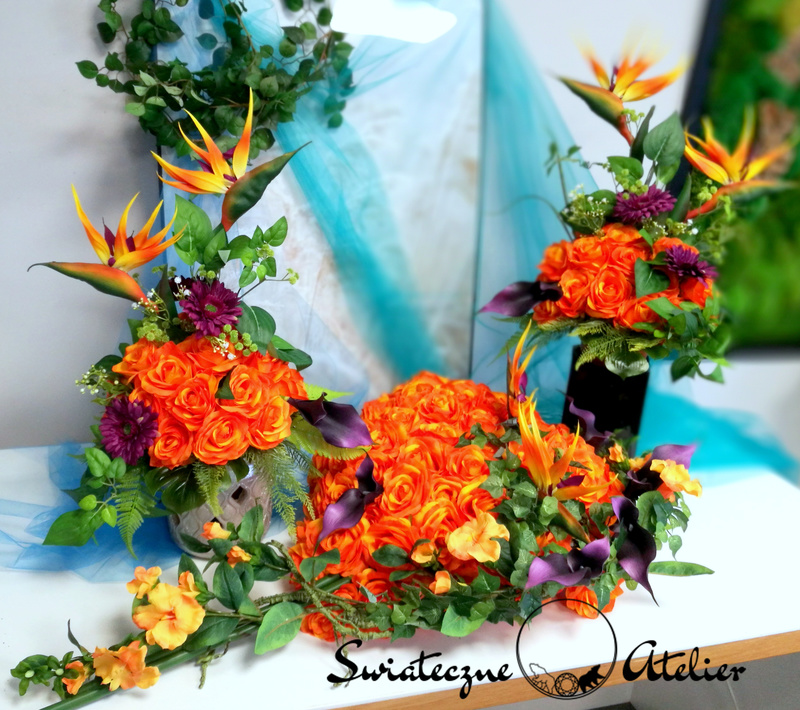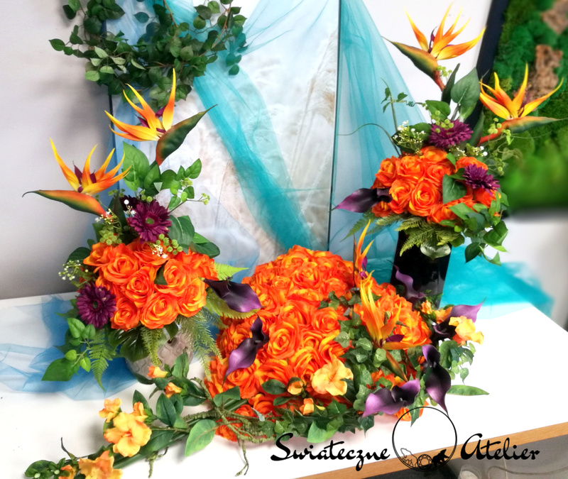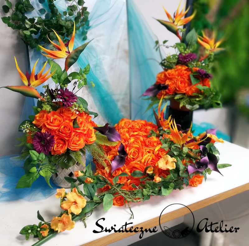 Jeżeli spodobał się Wam nasz produkt, możemy dla Was przygotować w komplecie inne elementy dekoracyjne. Na przykład wianki, stroiki, itp., zgodnie z Waszymi życzeniami. Jeśli znacie lub macie firmy, które potrzebują dla zbudowania eleganckiego wizerunku pięknych dekoracji – typu hotele, restauracje, salony kosmetyczne, gabinety lekarskie, domy weselne, itp., odzywajcie się do nas. Wykonujemy dowolne dekoracje kwiatowe zgodnie ze wskazówkami zleceniodawców, łącząc Wasze pomysły z naszym talentem.
