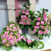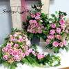 Serce nagrobne z dwoma bukietami w różu nr 1173 to piękna, całoroczna dekoracja. Stroik w kształcie serca prezentuje się bardzo elegancko. Bukiety zostały osadzone w plastikowym wkładzie. Wysokiej jakości sztuczne kwiaty otaczają zielone dodatki tworząc przepiękną dekorację. Kwiatostany kompozycji kwiatowej są starannie wykonane, do złudzenia przypominają naturalne. Kwiaty są wyjątkowej urody i dekoracja cały rok będzie prezentować się pięknie. Dzięki uniwersalnej kolorystyce sprawdzi się na każdym nagrobku, więc warto rozważyć jego wykorzystanie. Przepiękne róże i pełniki w cudownej kolorystyce świetnie sprawdzą się w nadchodzącym okresie.