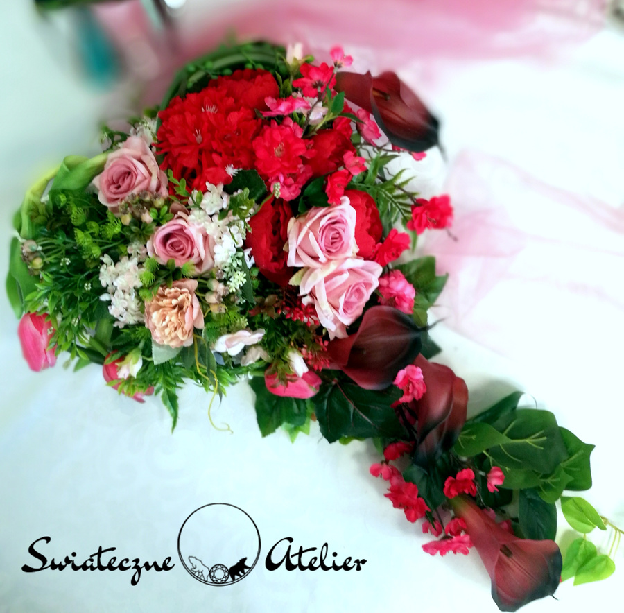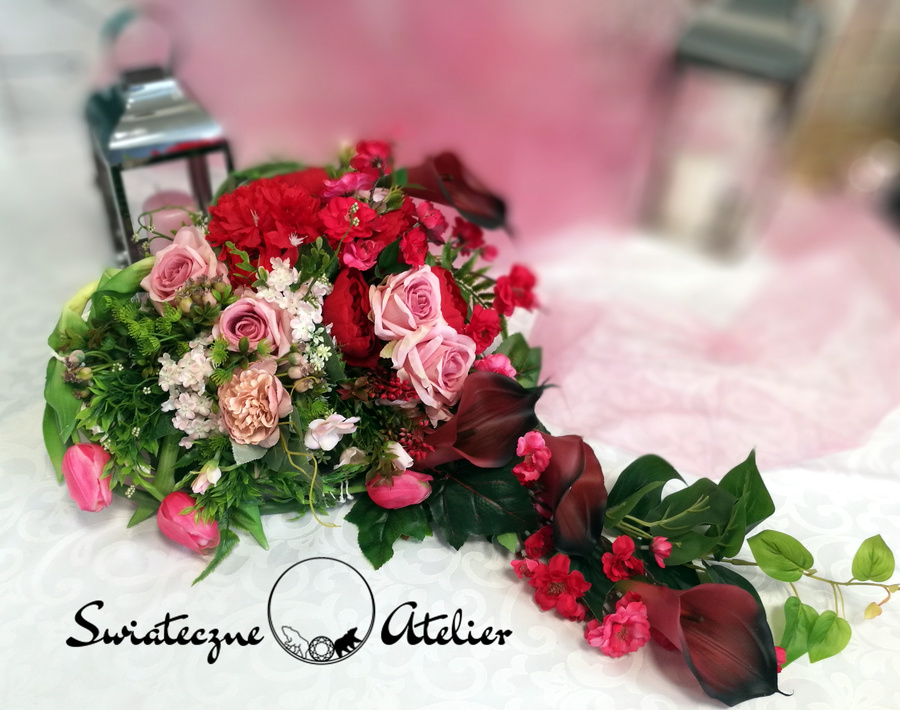 Każdą z naszych dekoracji wykonujemy ręcznie, więc gwarantujemy, że dekoracja, którą Wam dostarczymy, będzie jedyna w swoim rodzaju. Ze względu na to, że nasze kompozycje wykonujemy są za każdym razem ręcznie oraz sezonowość wykorzystywanych w kompozycjach dodatków – kompozycja przygotowana dla Państwa może delikatnie różnić się od przedstawionej na zdjęciu. Gwarantujemy natomiast jakość i estetykę wykonania Państwa zamówienia.