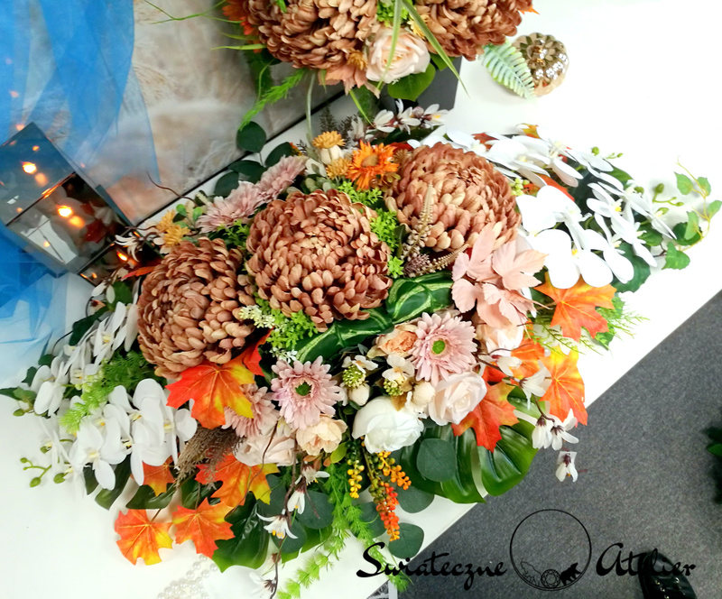 Jeżeli spodobał się Wam nasz produkt, możemy dla Was przygotować w komplecie inne elementy dekoracyjne. Na przykład wianki, stroiki, itp., zgodnie z Waszymi życzeniami. Jeśli znacie lub macie firmy, które potrzebują dla zbudowania eleganckiego wizerunku pięknych dekoracji – typu hotele, restauracje, salony kosmetyczne, gabinety lekarskie, domy weselne, itp., odzywajcie się do nas. Wykonujemy dowolne dekoracje kwiatowe zgodnie ze wskazówkami zleceniodawców, łącząc Wasze pomysły z naszym talentem.