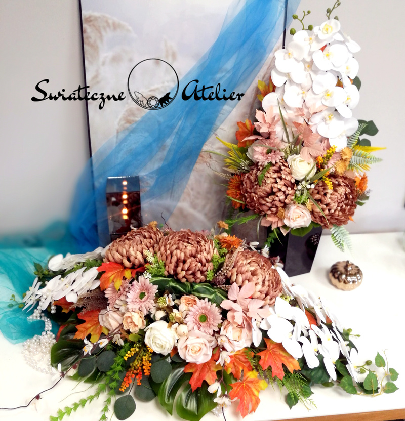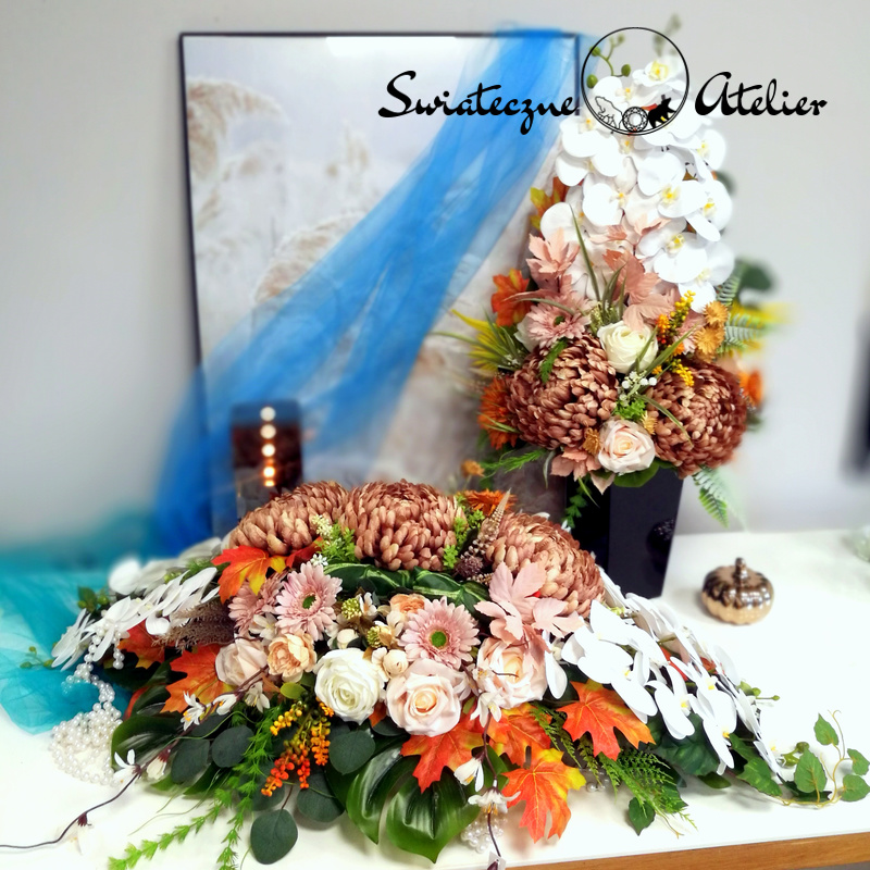 Jeżeli spodobała się Wam nasz Stroik i bukiet nagrobny Cappuccino i biel nr 1472 możemy dla Was przygotować w komplecie inne elementy dekoracyjne, takie jak wianki, girlandy itp., zgodnie z Waszymi życzeniami, które możecie nam przekazać.
