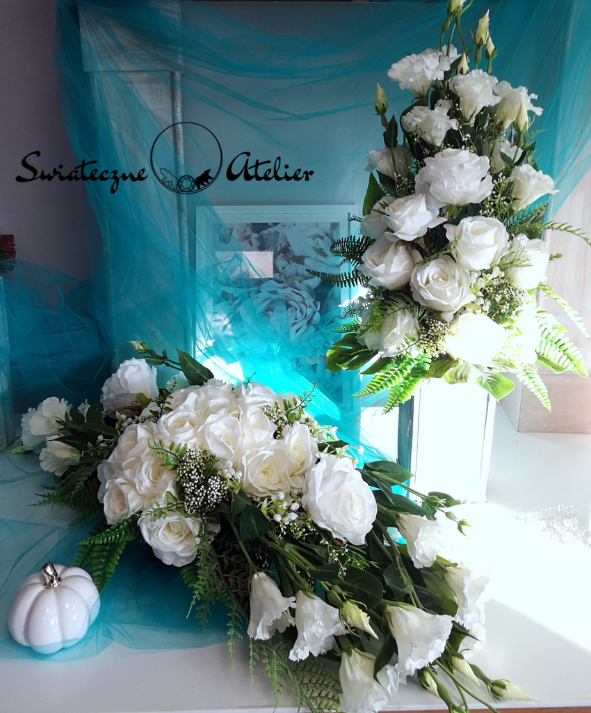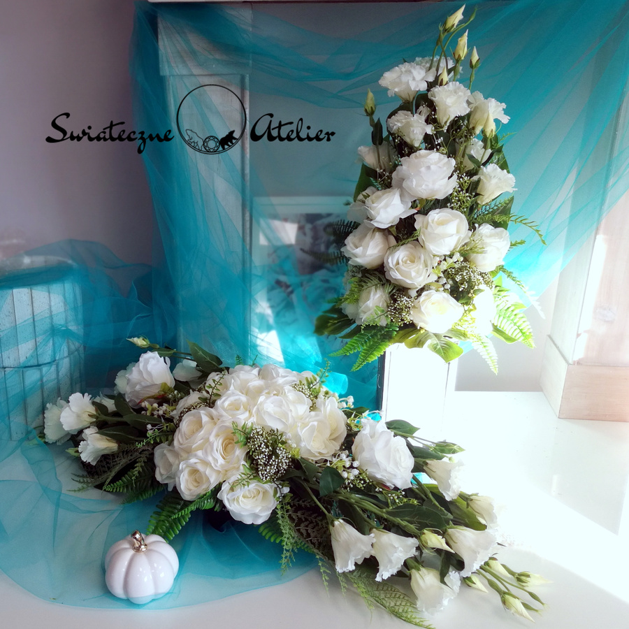 Jeżeli spodobała się Wam nasza kompozycja, możemy dla Was przygotować w komplecie inne elementy dekoracyjne, takie jak wianki, girlandy itp., zgodnie z Waszymi życzeniami, które możecie nam przekazać.