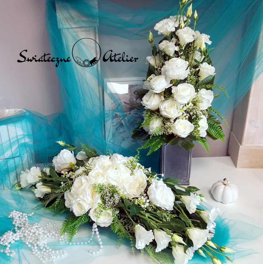 Stroik i bukiet nagrobny Delikatna biel nr 1094