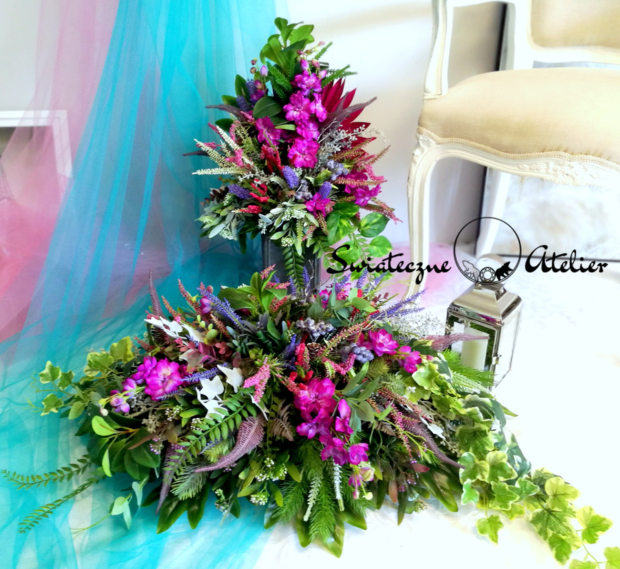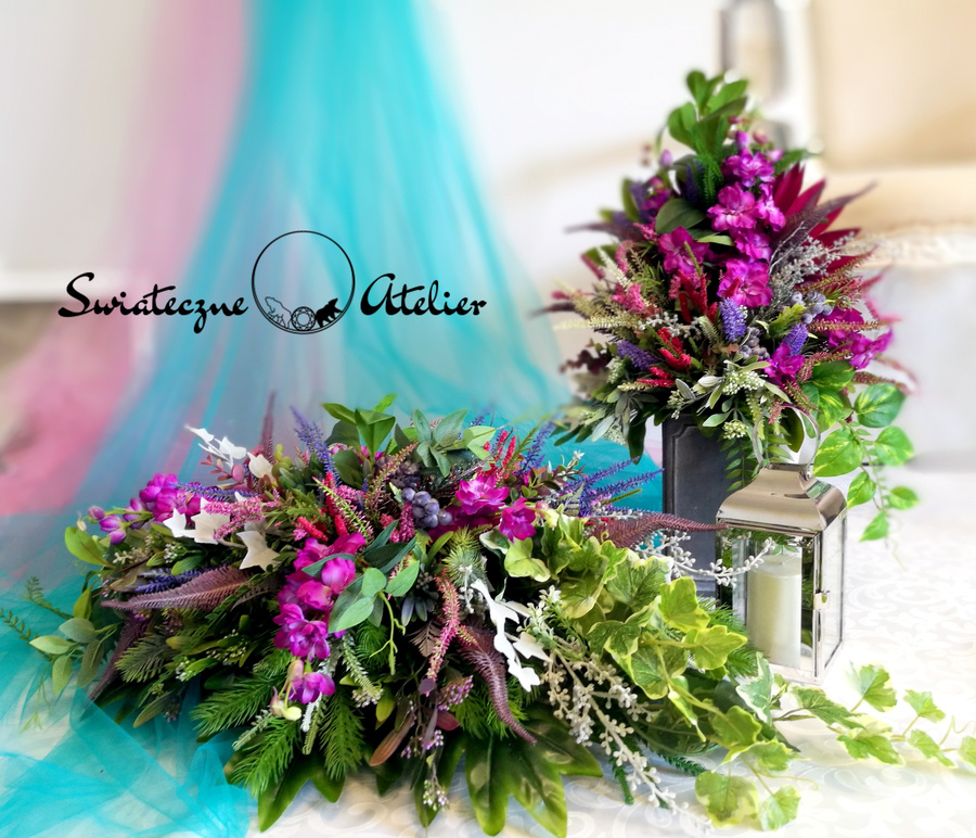 Każdą z naszych dekoracji wykonujemy ręcznie, więc gwarantujemy, że dekoracja, którą Wam dostarczymy, będzie jedyna w swoim rodzaju. Ze względu na to, że nasze kompozycje wykonujemy za każdym razem ręcznie oraz sezonowość wykorzystywanych w kompozycjach dodatków – kompozycja przygotowana dla Państwa może delikatnie różnić się od przedstawionej na zdjęciu. Gwarantujemy natomiast jakość i estetykę wykonania Państwa zamówienia.