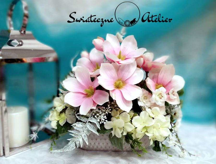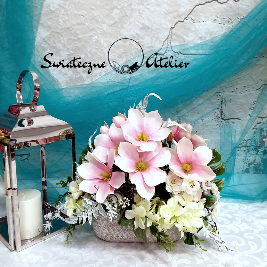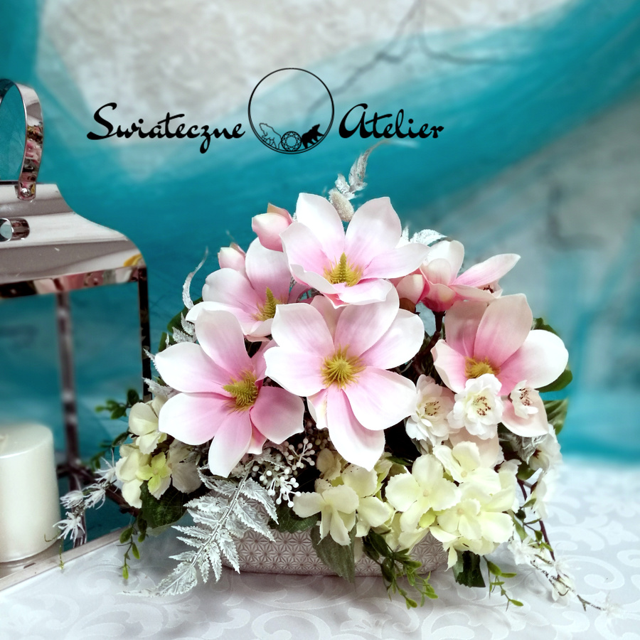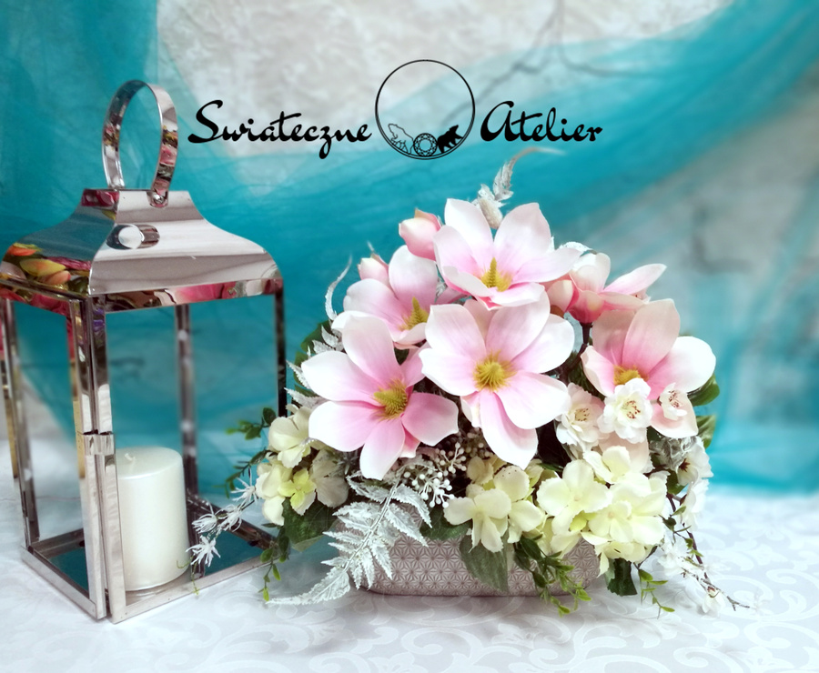 Jeżeli spodobał się Wam nasz Stroik kwiatowy Magnolia nr 703 możemy dla Was przygotować w komplecie inne elementy dekoracyjne. Na przykład wianki, stroiki, itp., zgodnie z Waszymi życzeniami. Jeśli znacie lub macie firmy, które potrzebują dla zbudowania eleganckiego wizerunku pięknych dekoracji – typu hotele, restauracje, salony kosmetyczne, gabinety lekarskie, domy weselne, itp., odzywajcie się do nas. Wykonujemy dowolne dekoracje kwiatowe zgodnie ze wskazówkami zleceniodawców, łącząc Wasze pomysły z naszym talentem.
