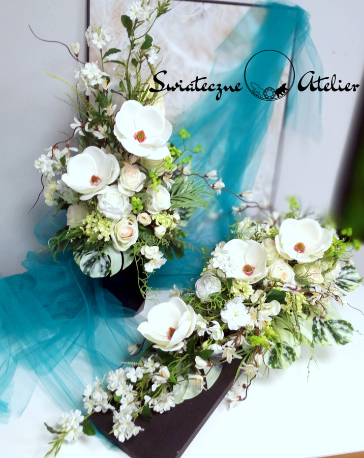 Jeżeli spodobała się Wam nasz Stroik nagrobny z bukietem Biała Magnolia nr 1364 możemy dla Was przygotować w komplecie inne elementy dekoracyjne, takie jak wianki, stroiki, bukiety itp., zgodnie z Waszymi życzeniami, które możecie nam przekazać.