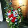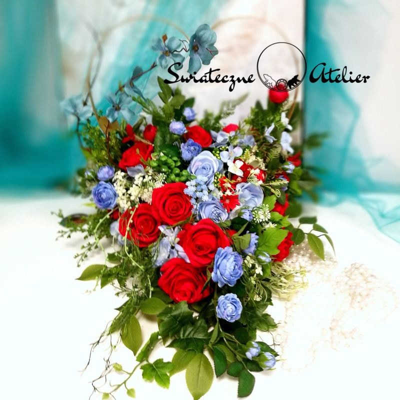 Wszystkie kwiaty wykorzystane w kompozycji to dobrej jakości sztuczne kwiaty i doskonale imitują te prawdziwe.