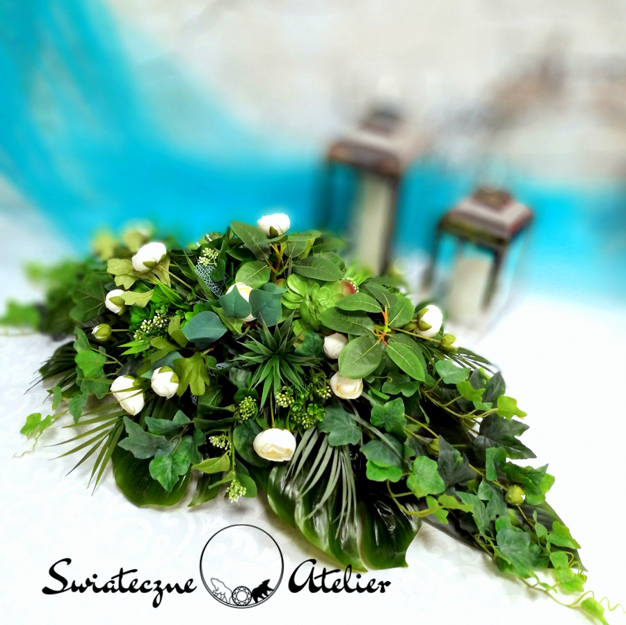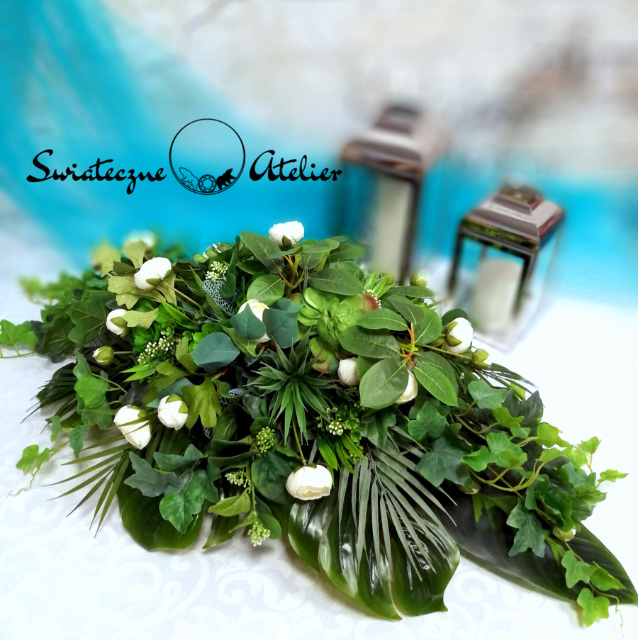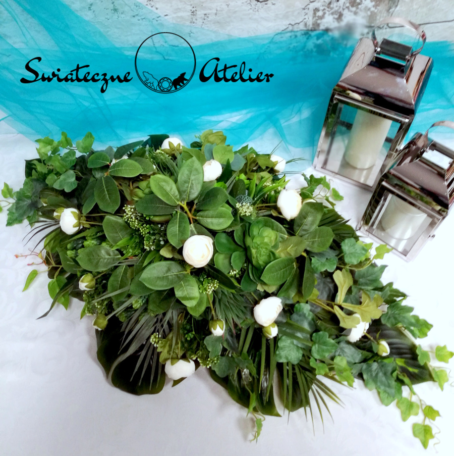 Stroik nagrobny zielony z pełnikami nr 691 jest elegancką kompozycją kwiatową osadzoną w obciążonej podstawie. Jest to zielona kompozycja wykonana z wysokiej jakości materiałów. Ozdobiliśmy ją sukulentami i delikatnymi pełnikami, więc tworzy wyjątkową kompozycję. Kwiaty, których użyliśmy do tej dekoracji nagrobnej, są w pięknych kolorach i dekoracja niezależnie od pory roku będzie prezentować się pięknie. Prosta forma nadaje kompozycji lekkości i elegancji. Wysokiej jakości kwiaty oraz harmonia kompozycji pięknie zaprezentują się zarówno na ciemnym jak i jasnym nagrobku. Zielone elementy podkreślają kolor kwiatów. Dekoracja niespotykana i bardzo elegancka.