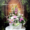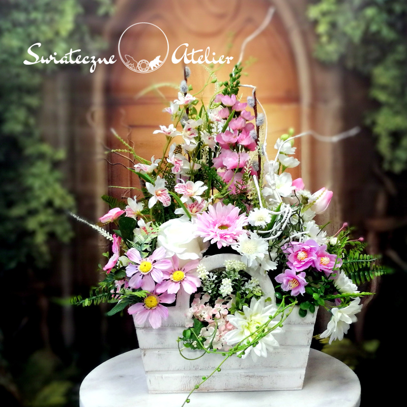 Stroik nagrobny w koszu pastelowy nr 1480 jest to piękna kompozycja kwiatowa  osadzona w drewnianym koszyku. Kwiaty wysokiej jakości pięknie się prezentują , aplikacja  uzupełniona zielonymi dodatkami oraz wiosennymi akcentami wygląda delikatnie i elegancko. Kwiaty utrzymaliśmy w świeżej kolorystyce tworzą wyjątkową kompozycję.  Rośliny, których użyliśmy do tej dekoracji nagrobnej są w pięknych kolorach i dekoracja niezależnie od pory roku będzie prezentować się pięknie. Klimatyczne dodatki stanowią uzupełnienie kompozycji. Ciekawa forma nadaje stroikowi charakteru  i elegancji.  Wysokiej jakości kwiaty oraz harmonia kompozycji pięknie prezentują się .  Zielone elementy podkreślają kolor kwiatów dekoracji.