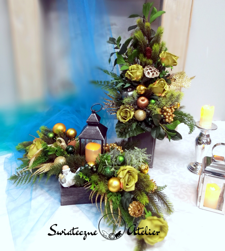 Jeżeli spodobała się Wam nasza kompozycja Świąteczny zestaw nagrobny Złoto i zieleń nr 846 możemy dla Was przygotować w komplecie inne elementy dekoracyjne. Takie jak wianki, stroiki, bukiety itp., zgodnie z Waszymi życzeniami, które możecie nam przekazać.