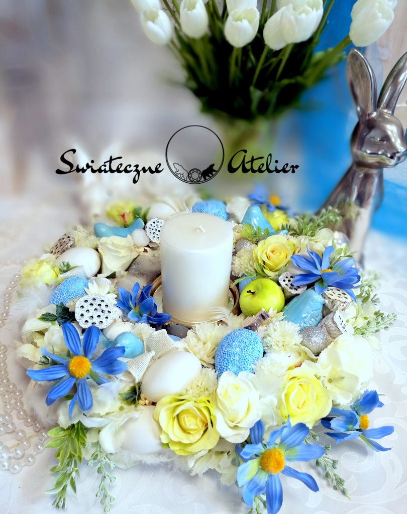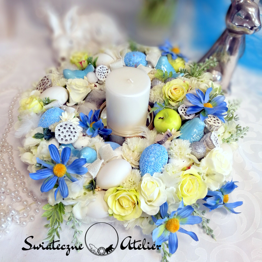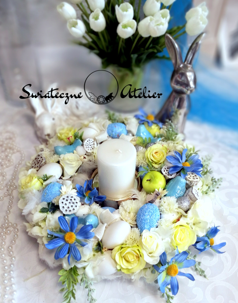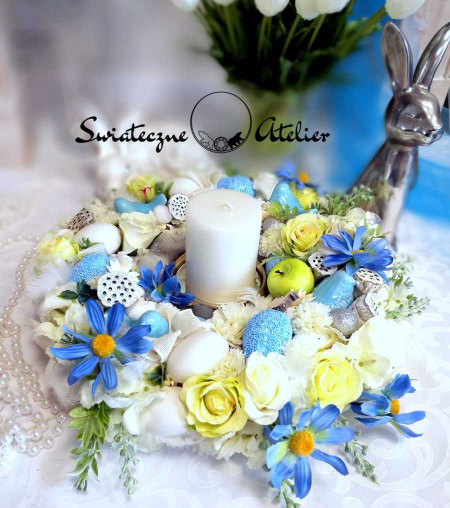 Całość wygląda bardzo dekoracyjnie i będzie pięknie prezentować się na wielkanocnym stole. Poprzez wyselekcjonowane kwiaty, cudownej jakości niejedna osoba mogłaby pomylić je z naturalnymi. Niewątpliwie ich zaletą jest świeży i piękny wygląd przez długi czas, bez dodatkowej pielęgnacji.
