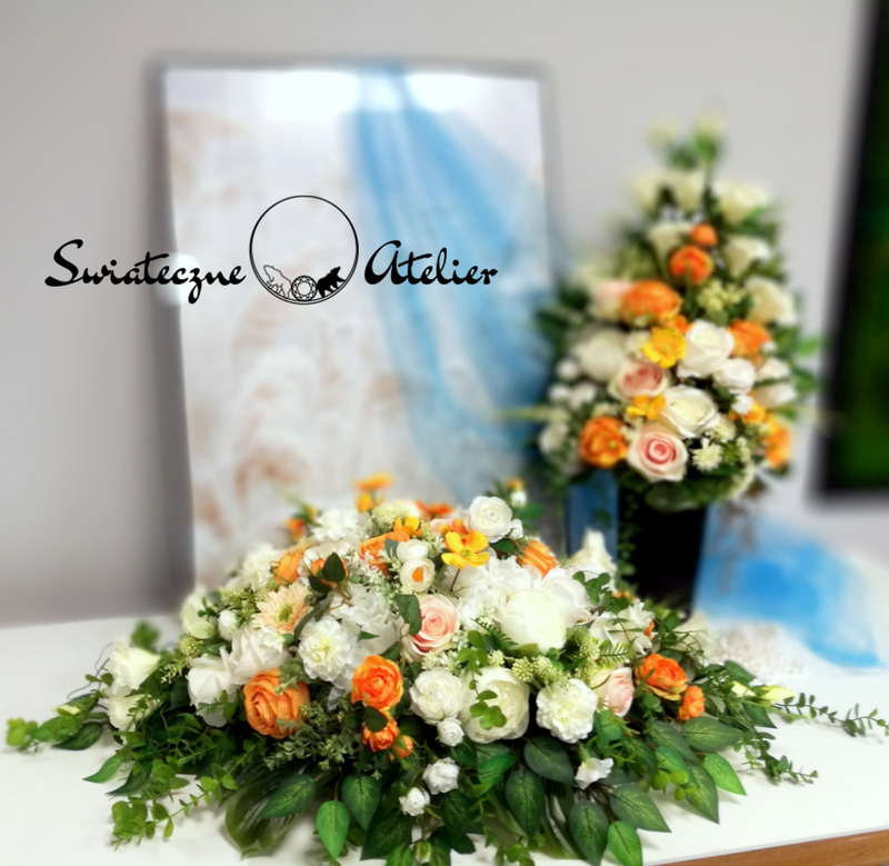 Jeżeli spodobała się Wam nasz Wieniec nagrobny z bukietem Delikatna biel nr 1420 możemy dla Was przygotować w komplecie inne elementy dekoracyjne, takie jak wianki, stroiki, bukiety itp., zgodnie z Waszymi życzeniami, które możecie nam przekazać.