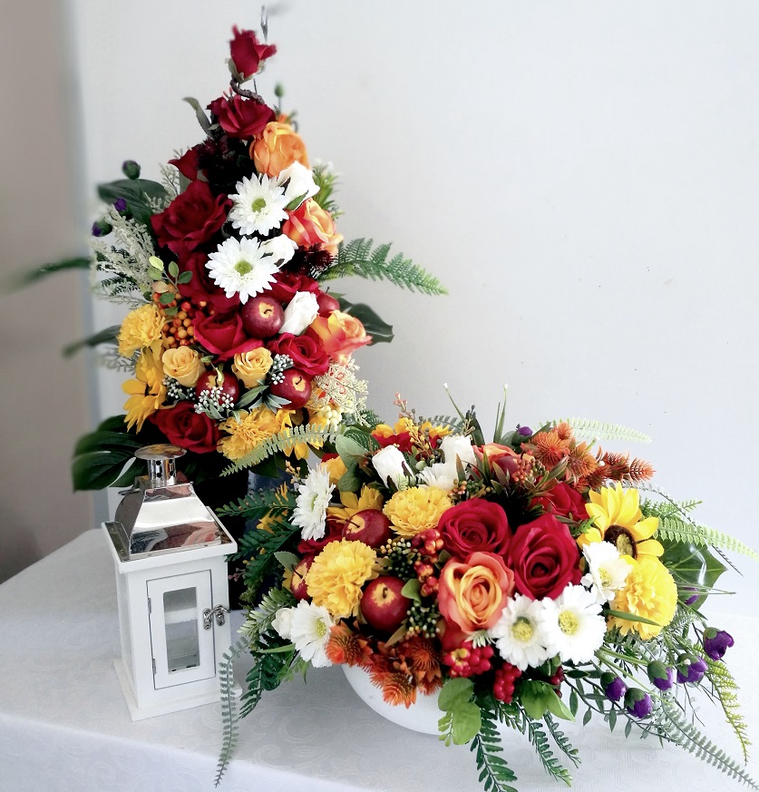 Każdą z naszych dekoracji wykonujemy ręcznie, więc gwarantujemy, że dekoracja, którą Wam dostarczymy, będzie jedyna w swoim rodzaju. Ze względu na to, że nasze kompozycje wykonujemy są za każdym razem ręcznie oraz sezonowość wykorzystywanych w kompozycjach dodatków – kompozycja przygotowana dla Państwa może delikatnie różnić się od przedstawionej na zdjęciu. Gwarantujemy natomiast jakość i estetykę wykonania Państwa zamówienia.